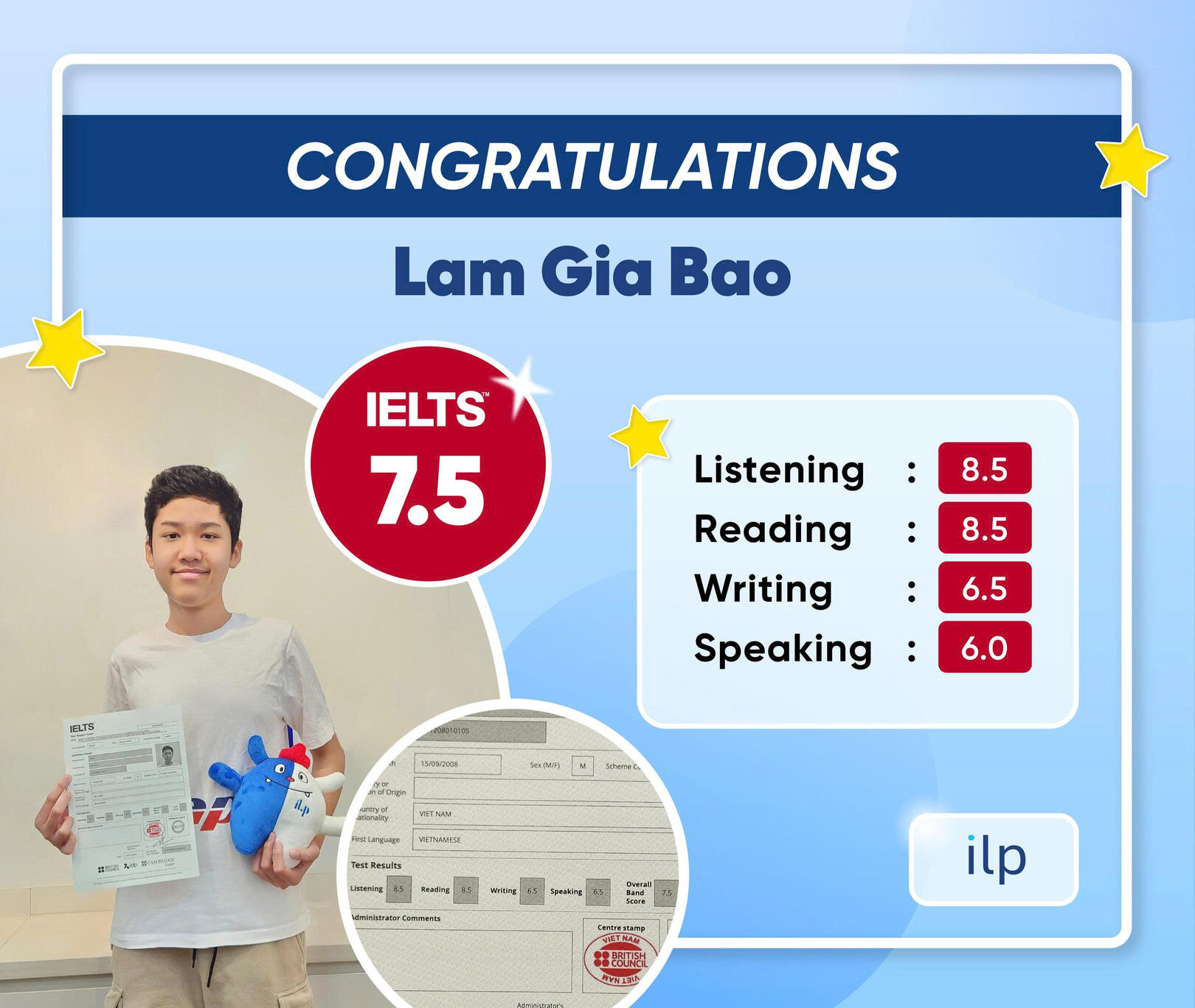 DỊCH VỤ IELTS không sử dụng điểm IELTS của khách hàng để quảng cáo trên Google, TikTok hay Facebook. Chúng tôi tôn trọng và bảo vệ tuyệt đối quyền riêng tư của khách hàng.