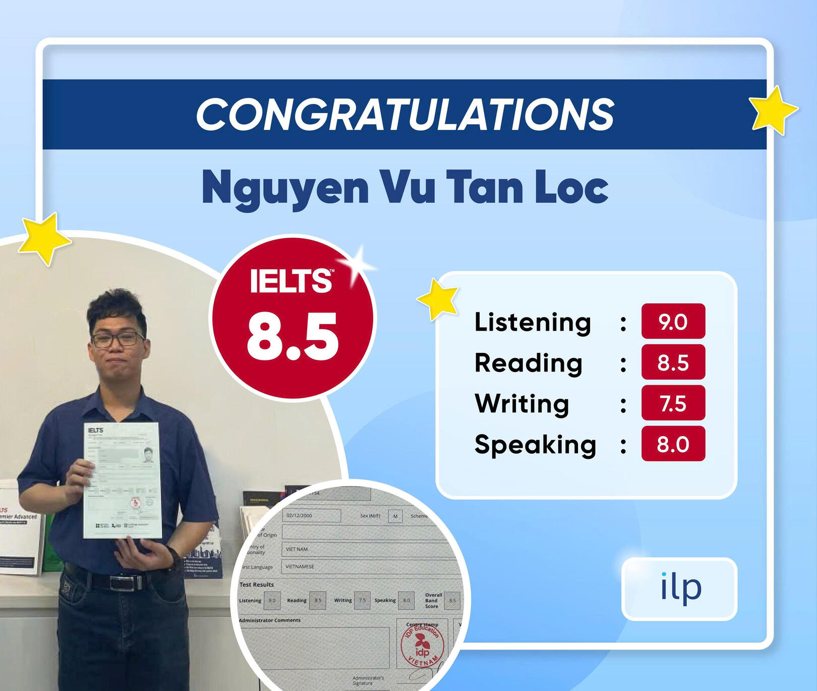 DỊCH VỤ IELTS không sử dụng điểm IELTS của khách hàng để quảng cáo trên Google, TikTok hay Facebook. Chúng tôi tôn trọng và bảo vệ tuyệt đối quyền riêng tư của khách hàng.